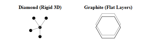 - Diamond: Each carbon atom is bonded to four others in a rigid 3D structure, making it the hardest natural substance.